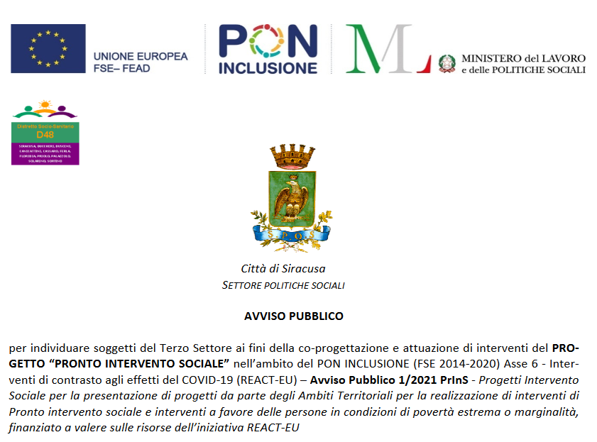 Scadenza entro le ore 12:00 del 20 Marzo 2023 obbligatoriamente via PEC all'indirizzo: servizisociali@comune.siracusa.legalmail.it